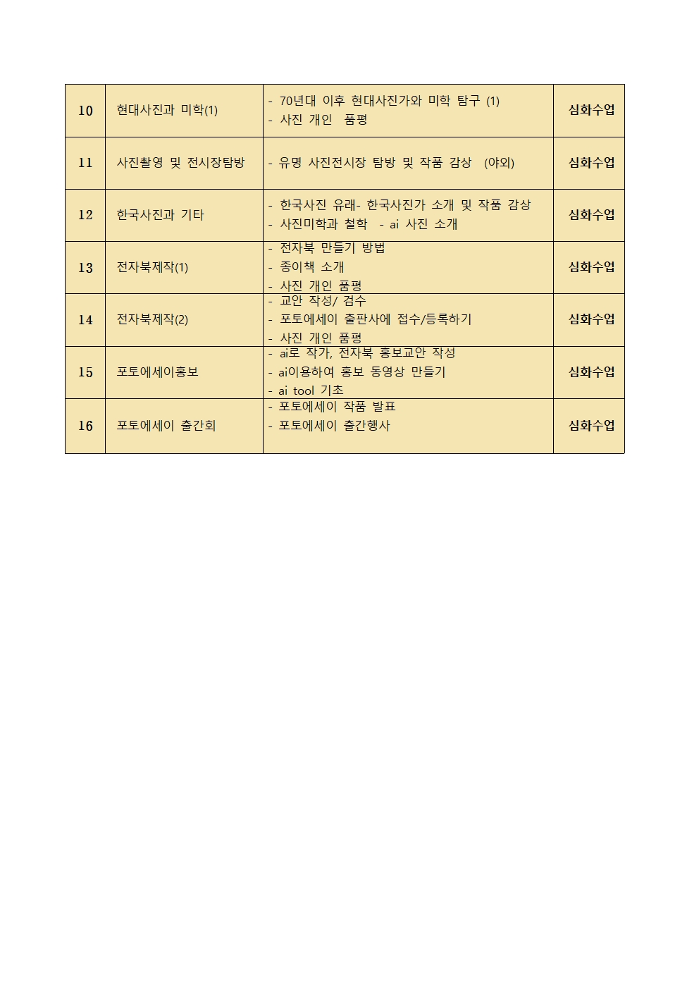 | 강좌명 | 사진 기술과 사진 미학Ⅱ: 포토에세이 창작의 확장 | |