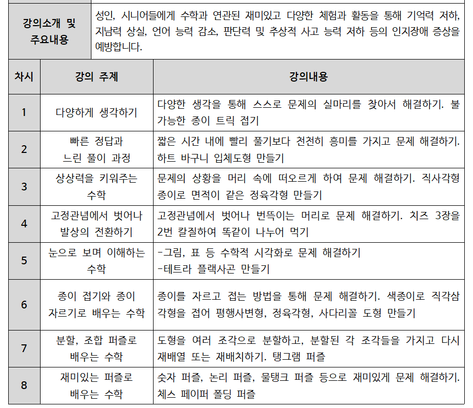 강좌명 [50세 이상] 치매 예방 수학